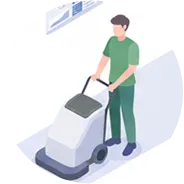 タイル、塩ビシート、石材など床材に応じて適切な洗剤と方法を選び、必要に応じてワックスや保護剤で仕上げ。定期メンテナンスや臨時清掃にも対応。