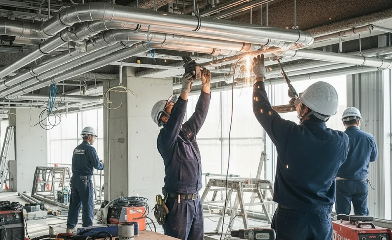 空調設備工事、排水管の高圧洗浄・配管工事、電気設備工事、消防設備工事